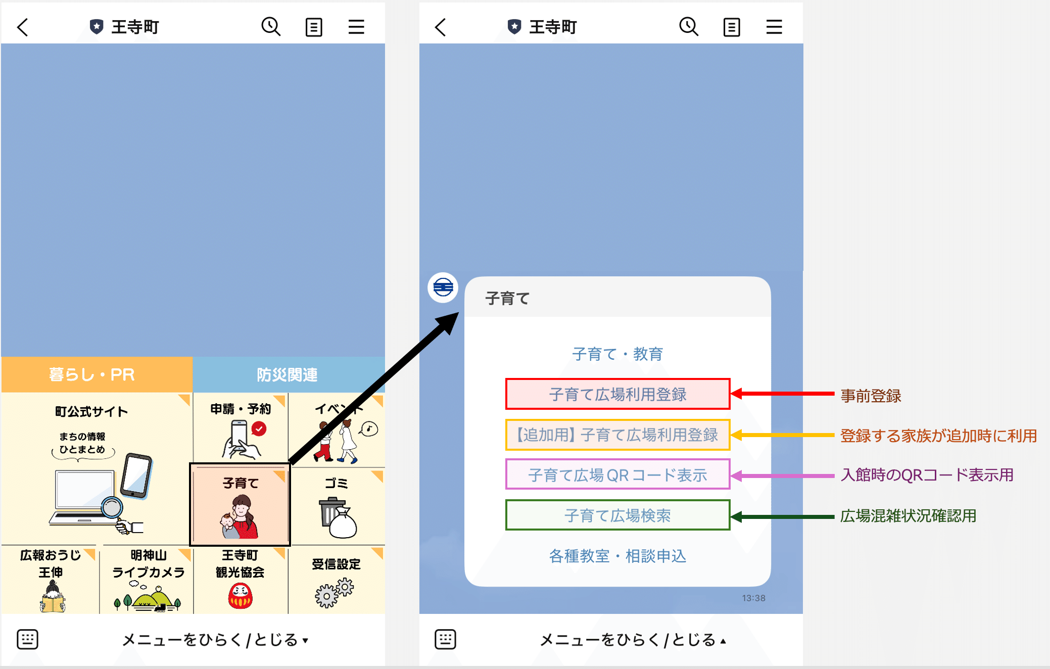 王寺町のリッチメニューと子育てメニュー