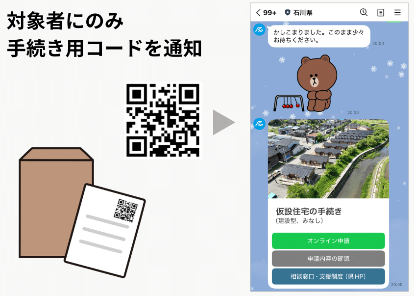 【石川県】LINEで能登半島地震被災者支援。県と16市町が手続きデータを共有し審査業務の負担軽減へ https://assets.st-note.com/production/uploads/images/246725548/rectangle_large_type_2_c231433e0a374c3bf356d7b533cc2f6f.jpeg?width=800 石川県は、令和6年能登半島地震の被災者が入居する仮設住宅の入居延長手続きを2025年7月にLINEでオンライン化しました。県と16市町が同一のデータ基盤で申請データを管理し、審査状況をリアルタイムに共有できる仕組みを構築した事例をご紹介します。