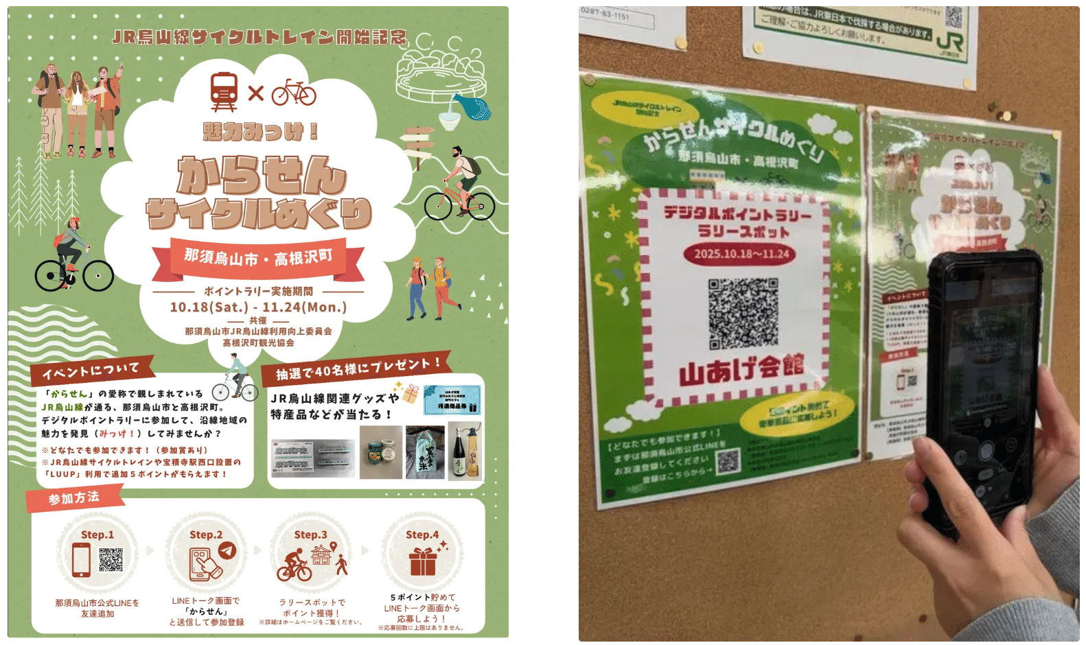 左:イベントチラシ、右:ポイント獲得の様子